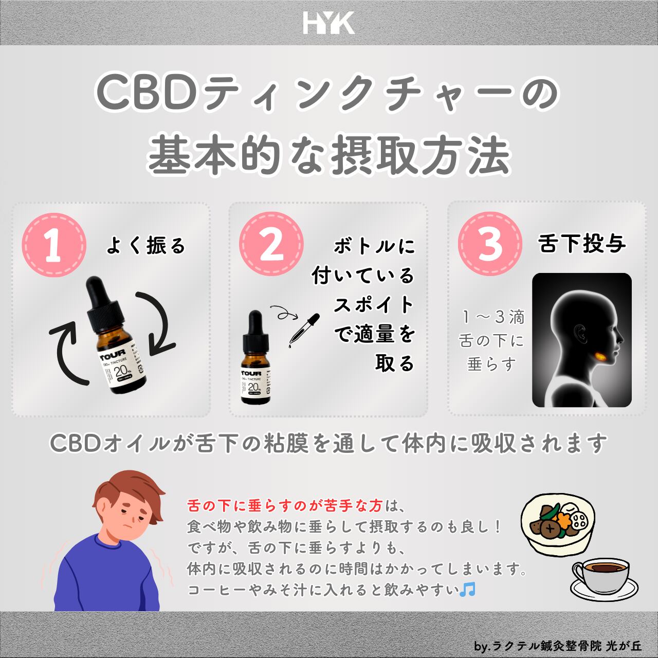 スポイトでオイルを吸い取り舌下投与にて摂取。食前の場合は1~2滴を、就寝前の場合は5~10滴を目安に摂取しましょう。または、60度以下の飲み物や、サラダやなどの料理に加えてお召し上がりください。